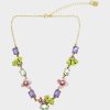 Refined chain necklace featuring glistening stones and festive red, white and blue charms at front including; pinwheel, ice cream cone, popsicle, sunglasses and stars. Fourth of July inspired necklace has an adjustable lobster clasp closure. Made from polished metal, glass and plastic.