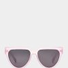 Pop out of the crowd with this whimsical, yet stylish pair of Betsey Johnson DOUBLE TAKE Ladies sunglasses. They have white, cateye-style frames made from plastic. The smoke lenses offer 100% UVA/UVB lens protection and are scratch and impact resistant.