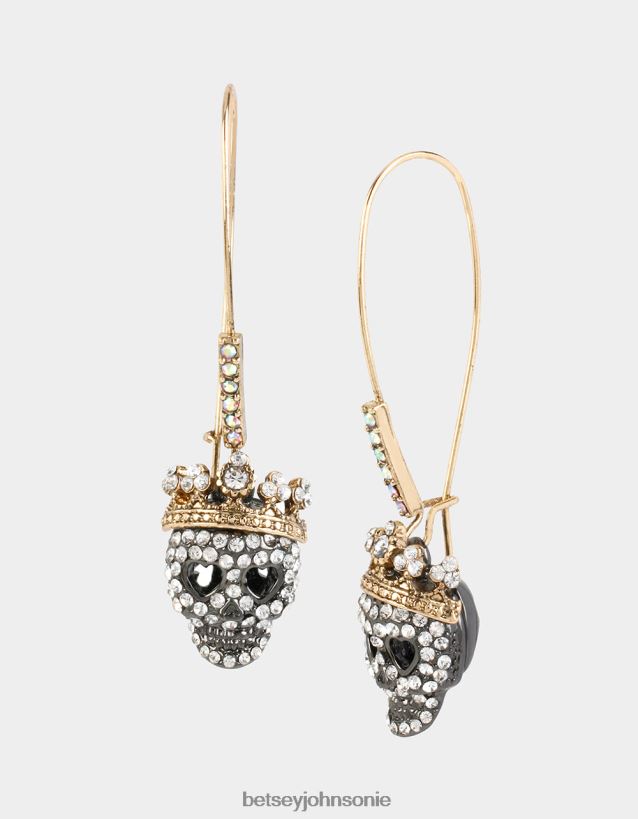 Don’t lose your head; wear it instead! These drop skull earrings are of royal descent with a golden crown and glittering crystals.