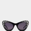 Add a quirky style to your collection with the Betsey Johnson PETITE PETALS Ladies’ sunglasses with lavender, cat-eye-style plastic frames. The purple smoke gradient lenses offer 100% UVA/UVB protection and are scratch and impact resistant.