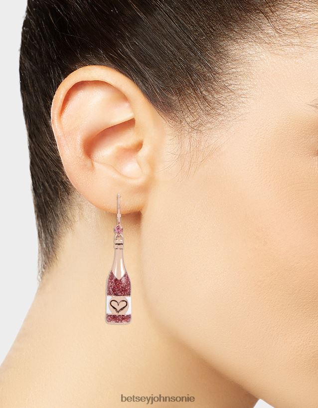 - Mismatched drop earrings with glitter effect rose bottle and grape cluster embellished with small crystal stone accent and rose gold-tone details